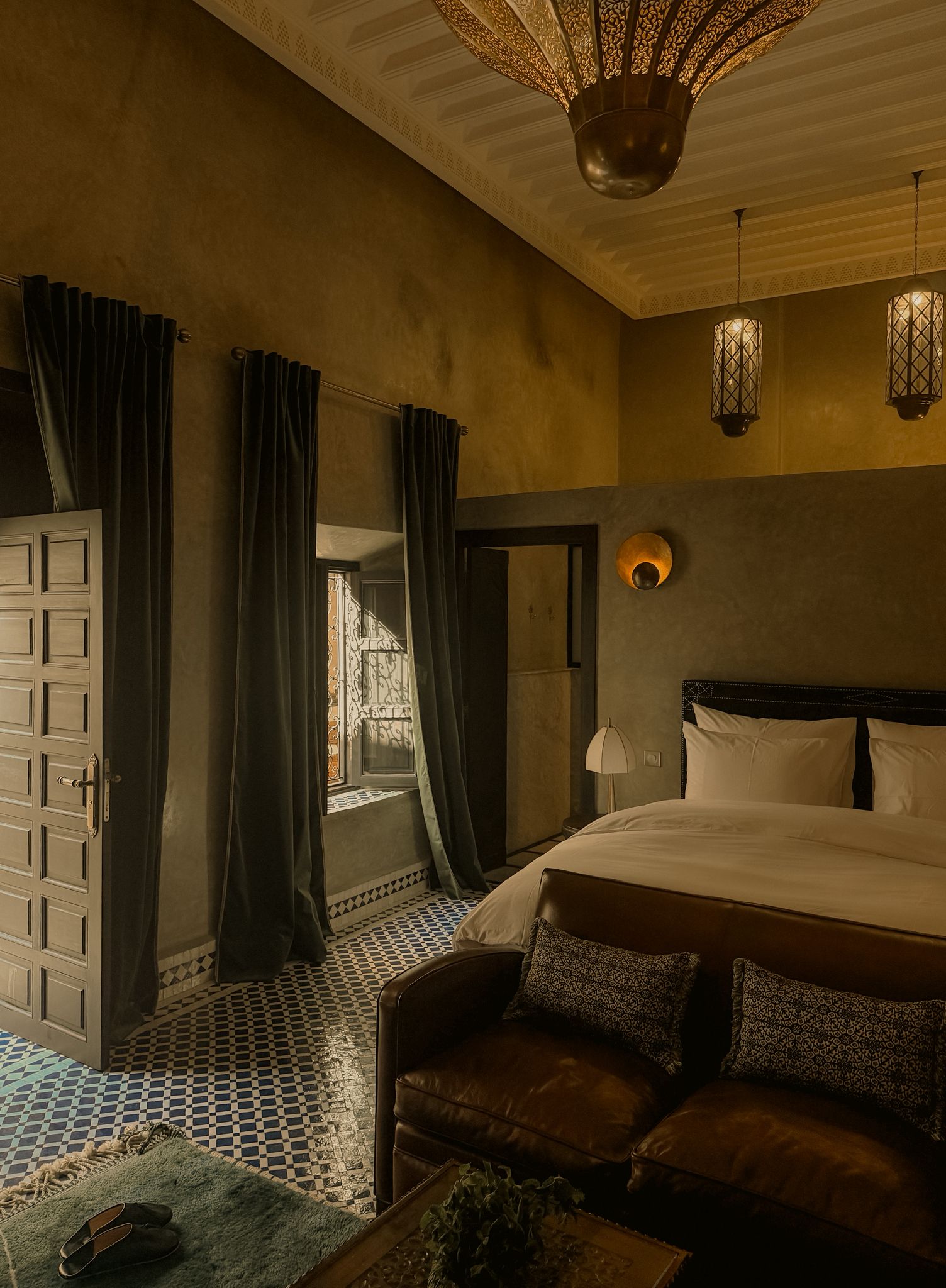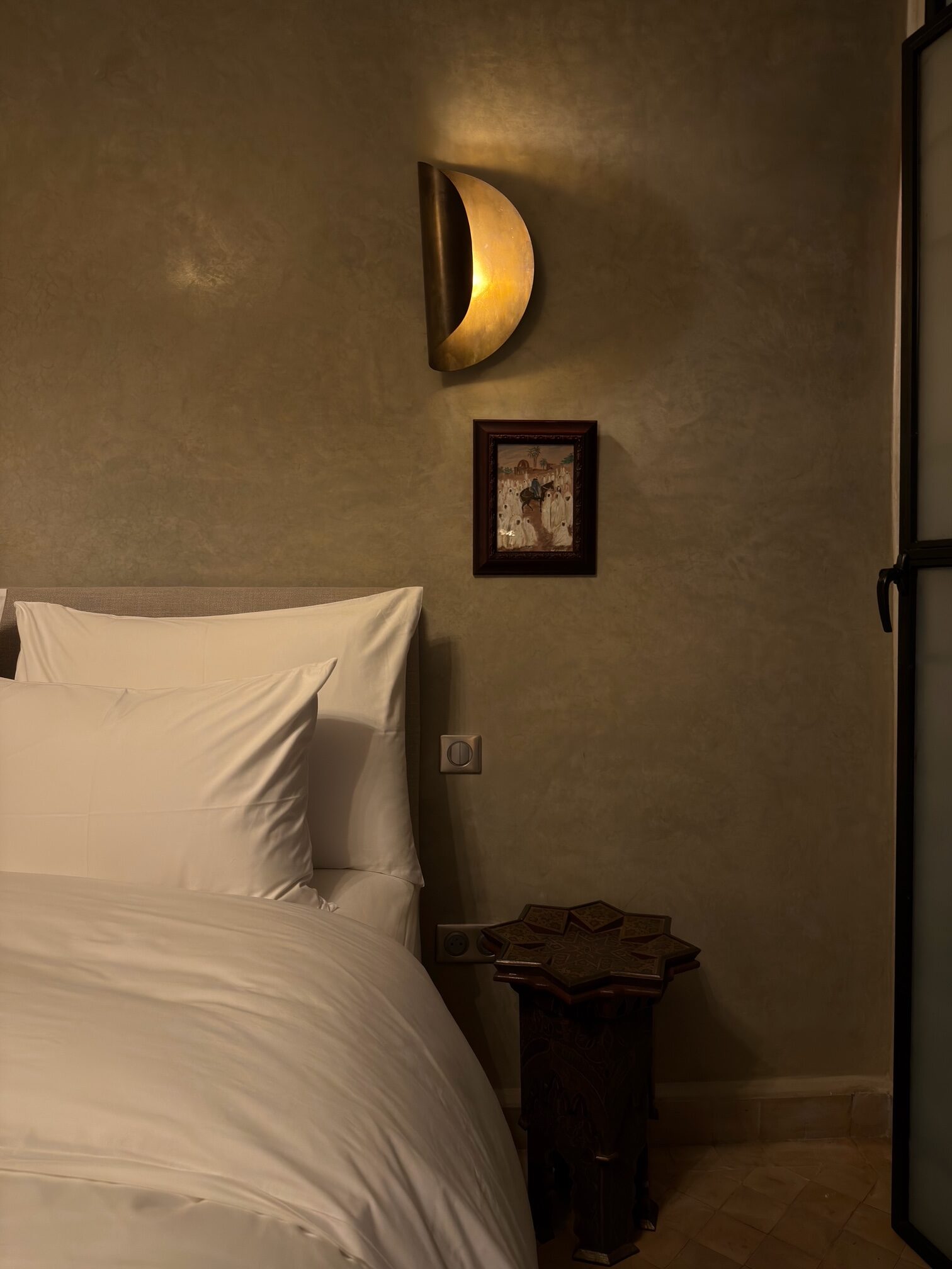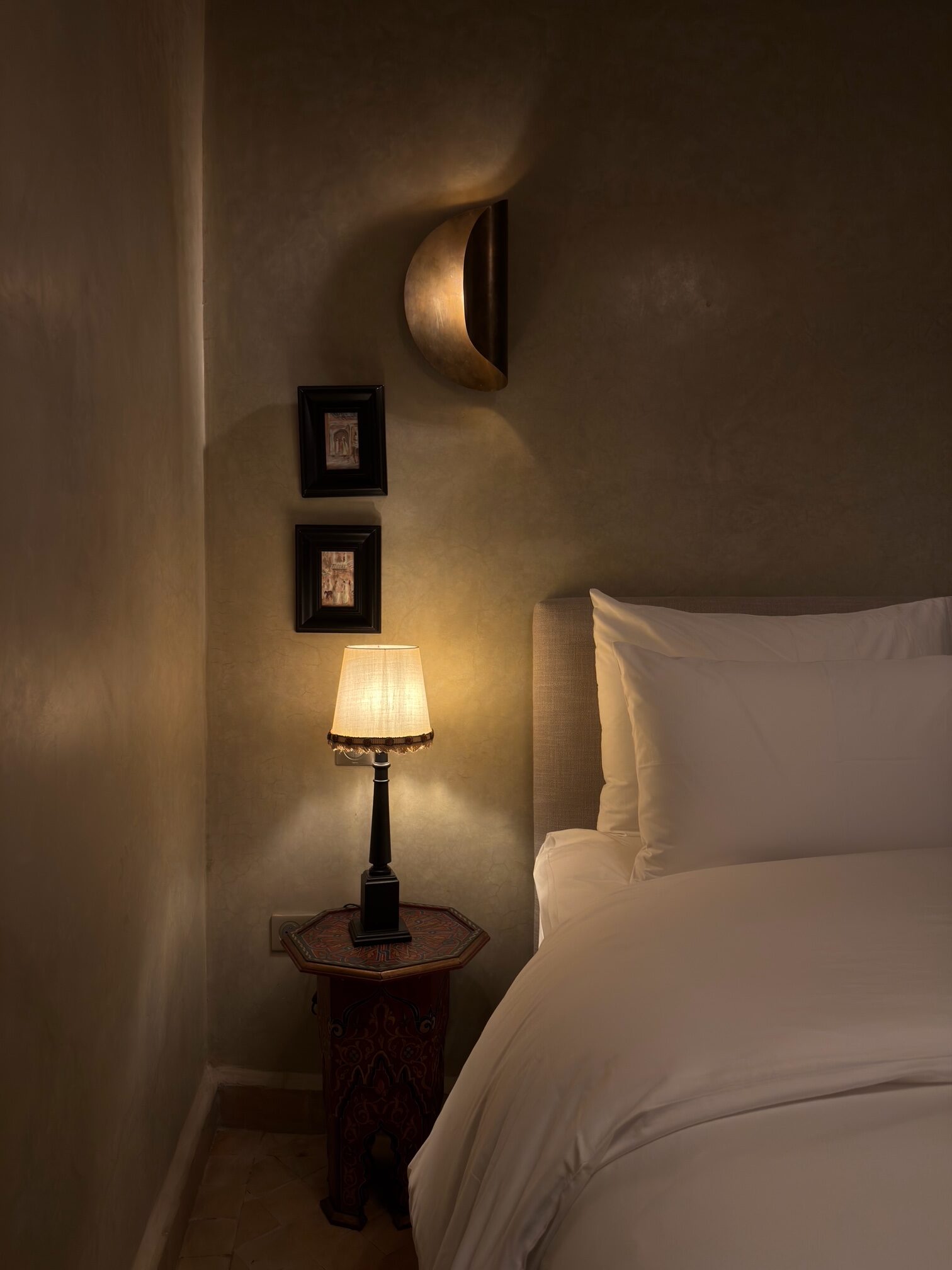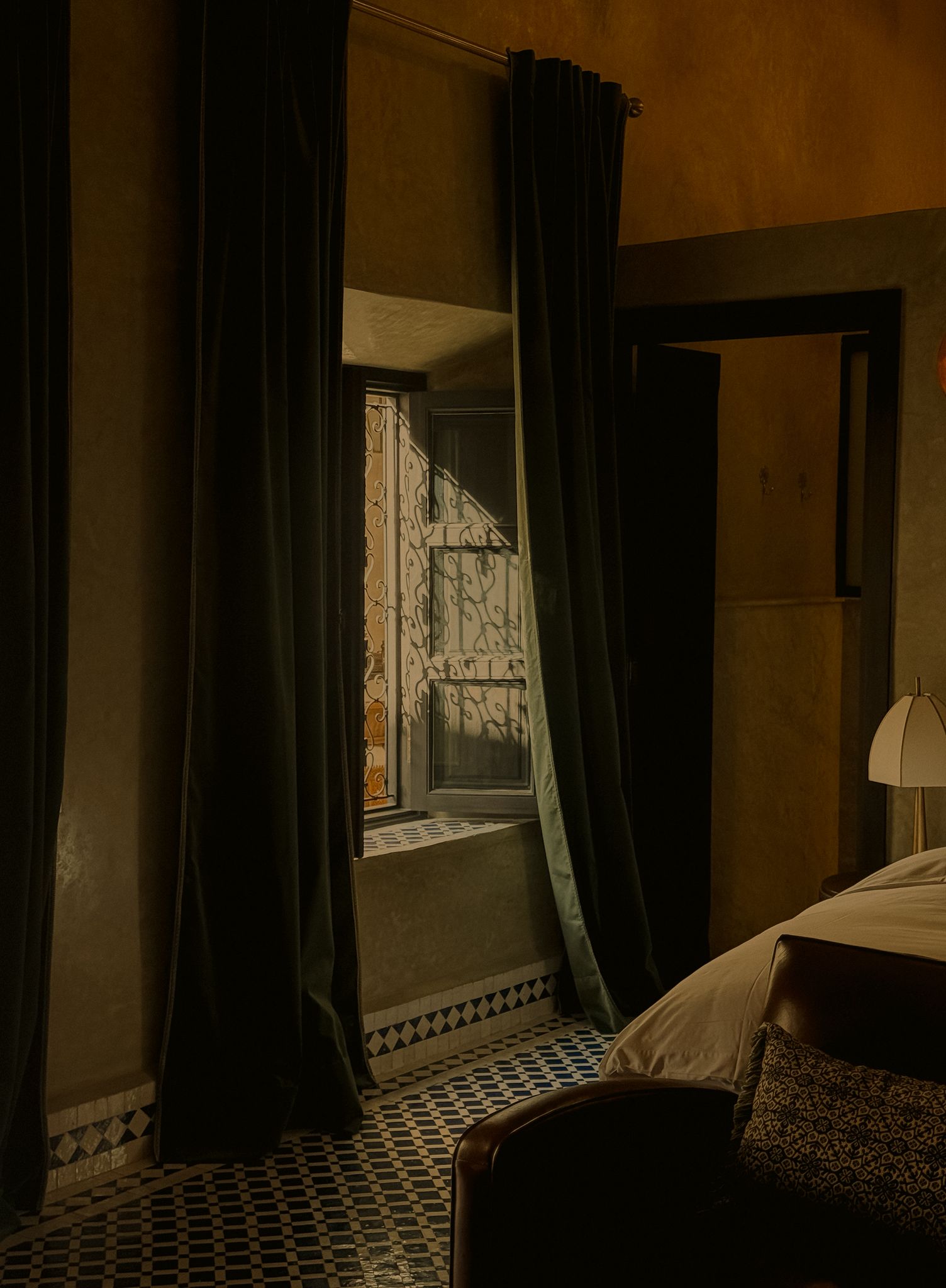 Modest in size yet precious in atmosphere, it invites calm and rest. A cosy, hushed, and enveloping room, conceived as a serene interlude in the heart of the medina.