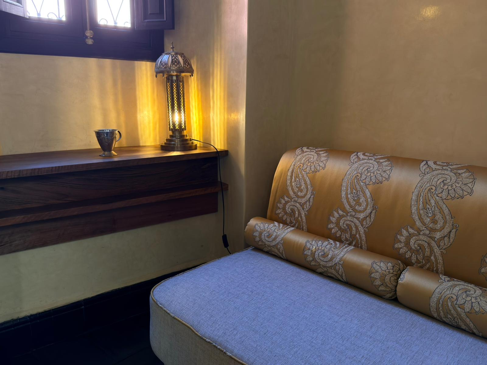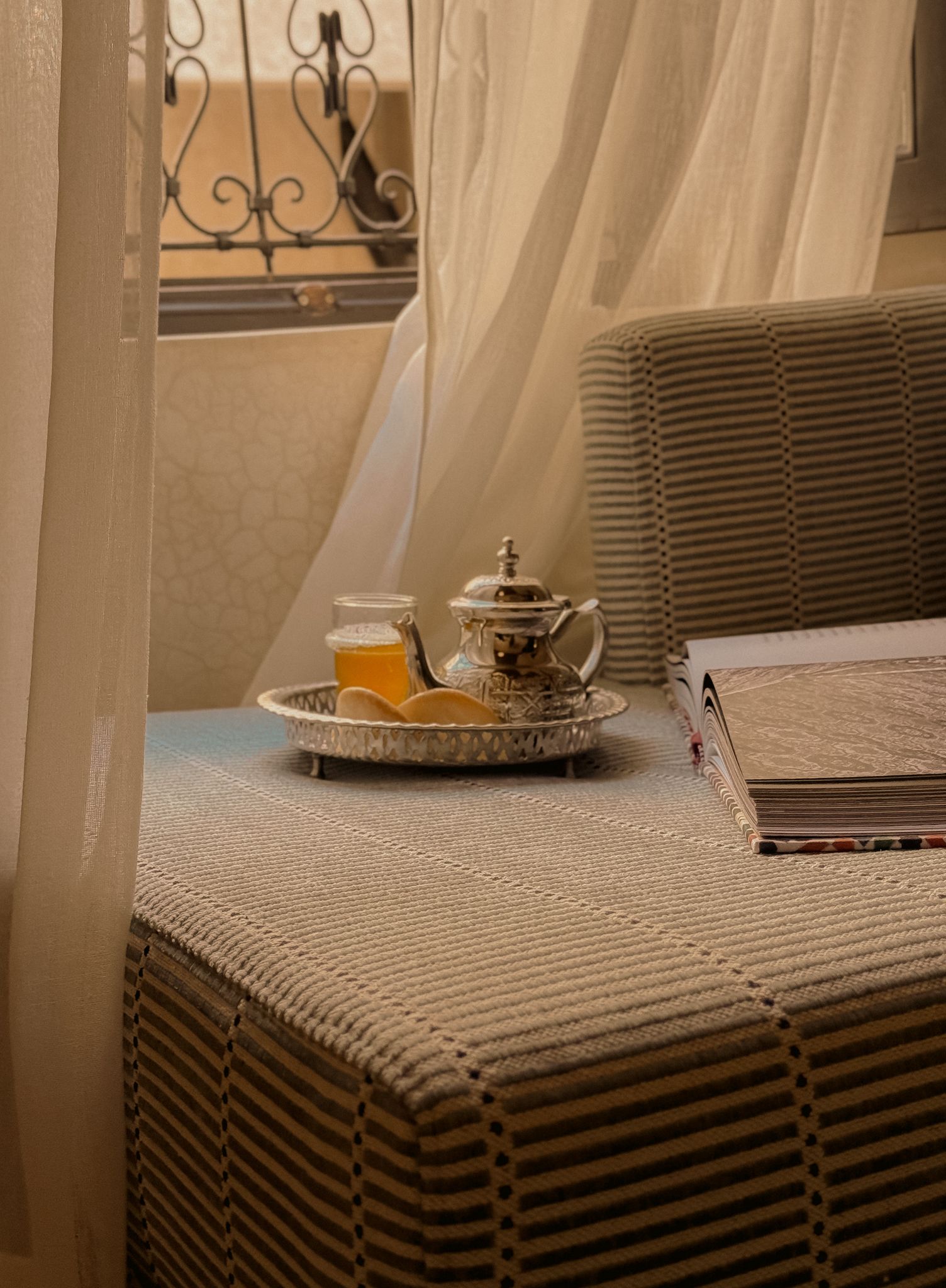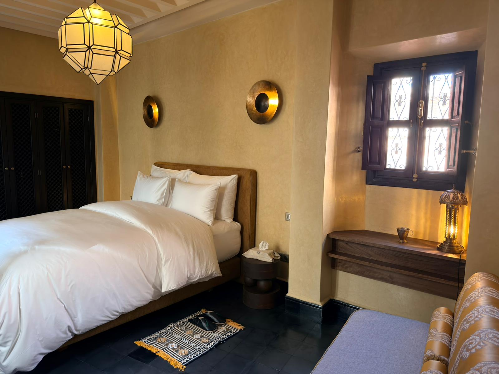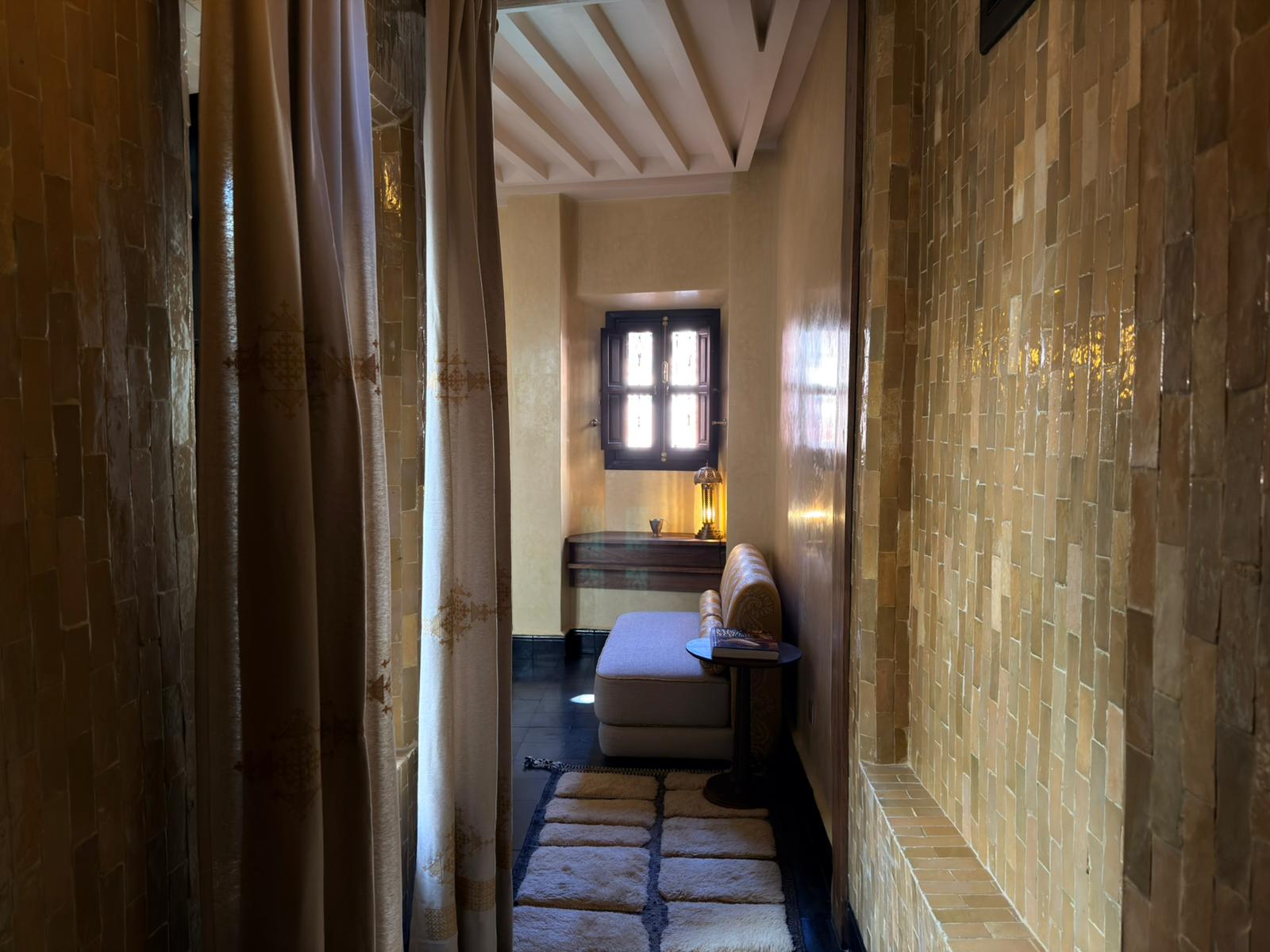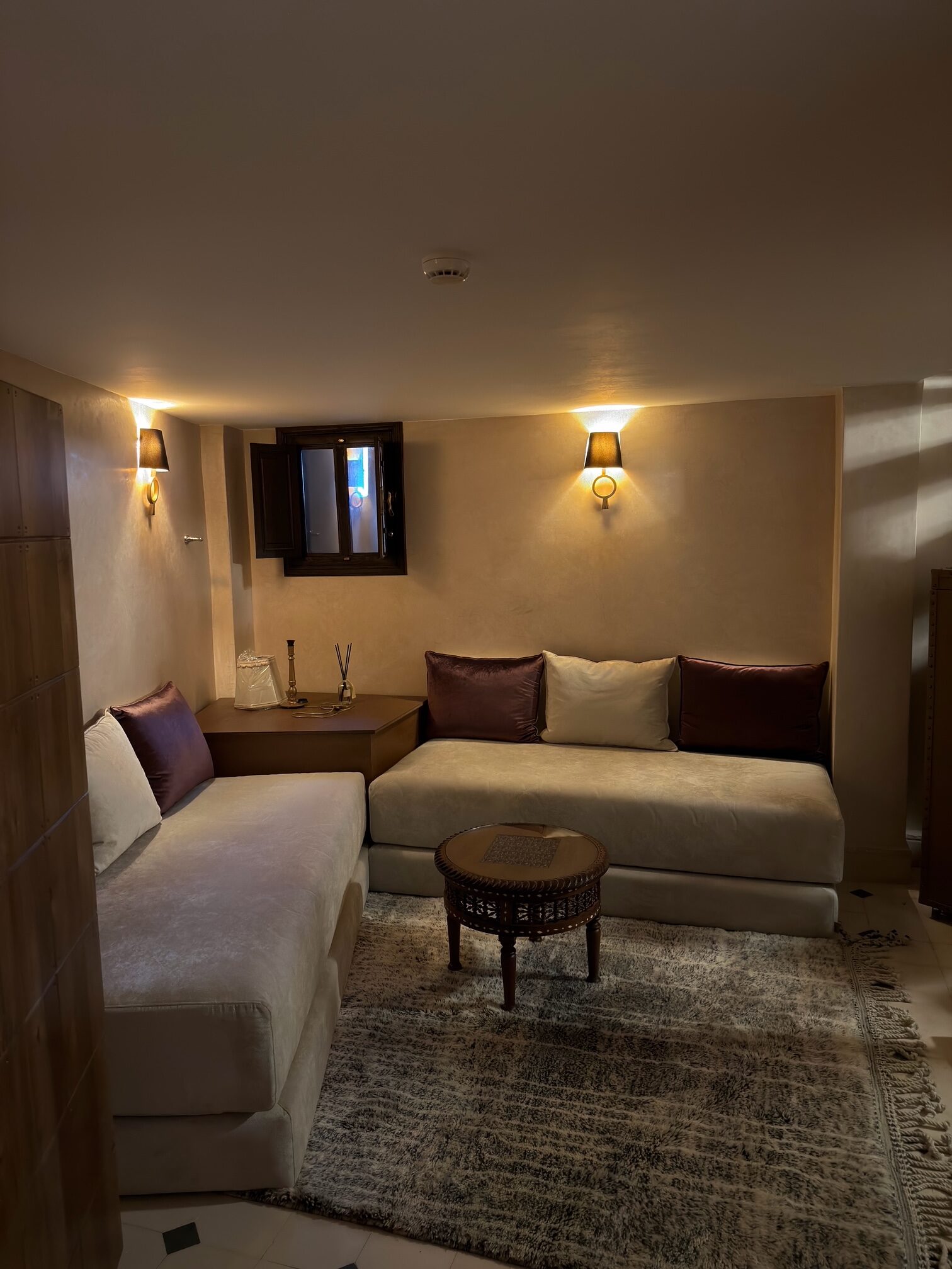 Modest in size yet precious in atmosphere, it invites calm and rest. A cosy, hushed, and enveloping room, conceived as a serene interlude in the heart of the medina.