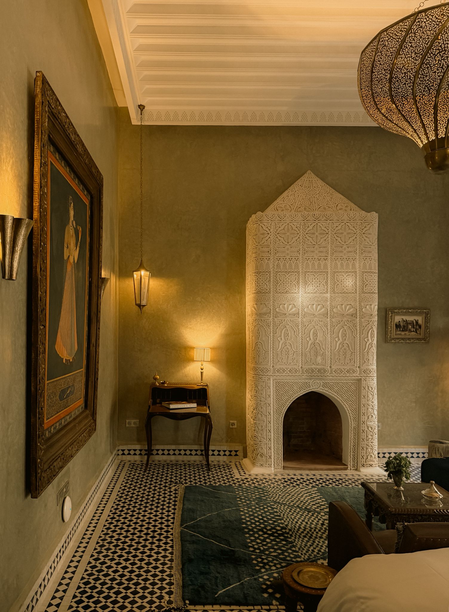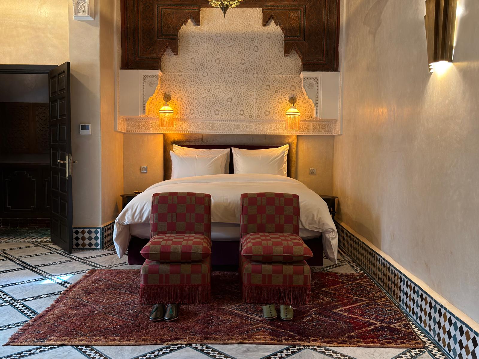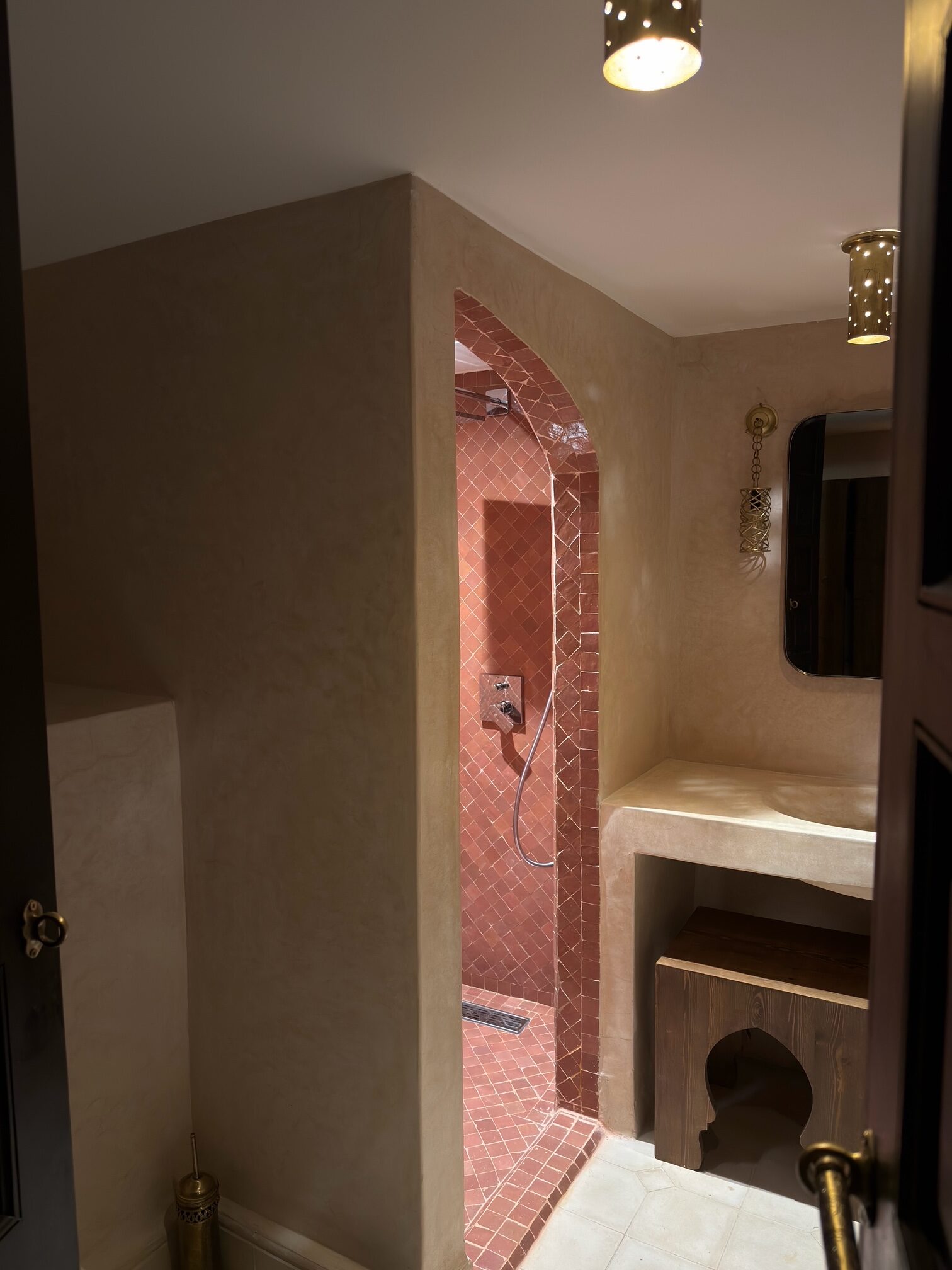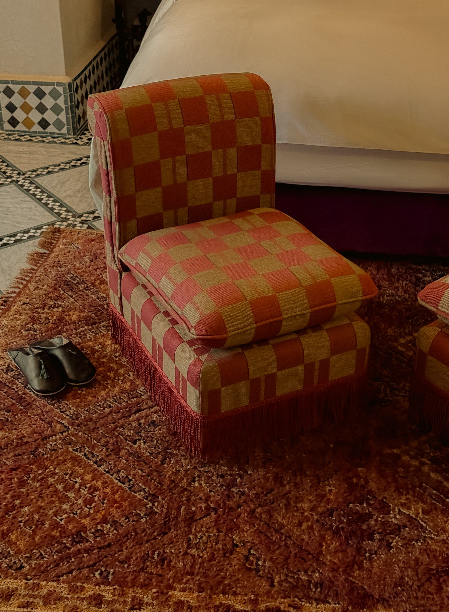 Modest in size yet precious in atmosphere, it invites calm and rest. A cosy, hushed, and enveloping room, conceived as a serene interlude in the heart of the medina.