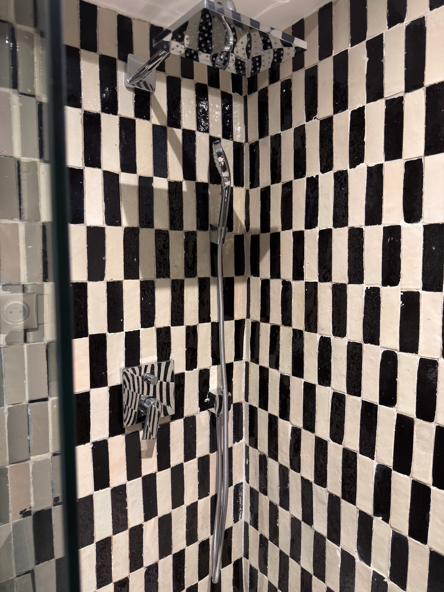 Its carved wooden ceiling, patiently restored, and the delicately crafted zellige tiles bear witness to ancestral craftsmanship returned to its full splendor.