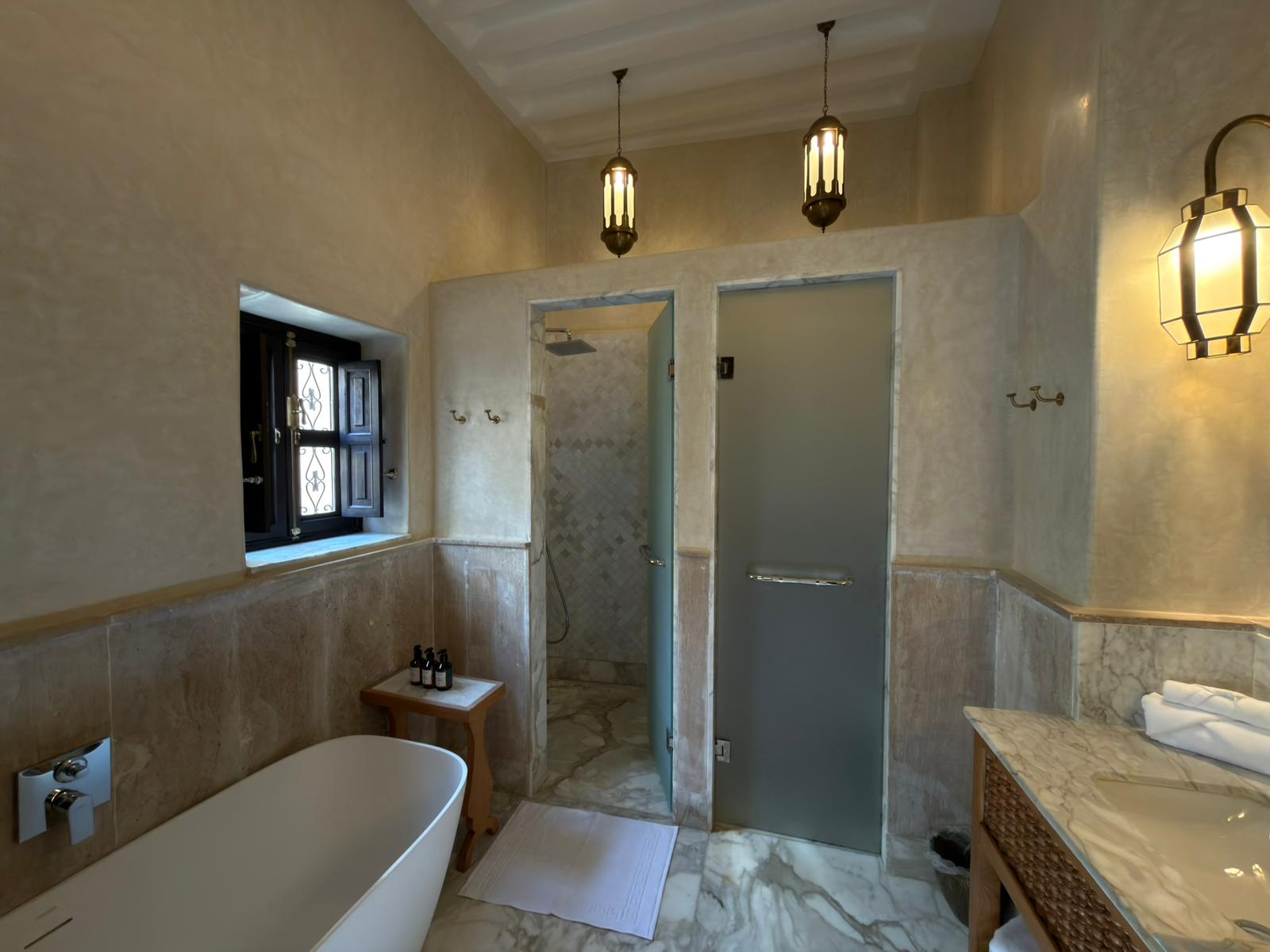Its understated lines, traditional materials, and refined simplicity create a room where one may fully enjoy the calm, the soft song of water, and the gentle charm of the medina.